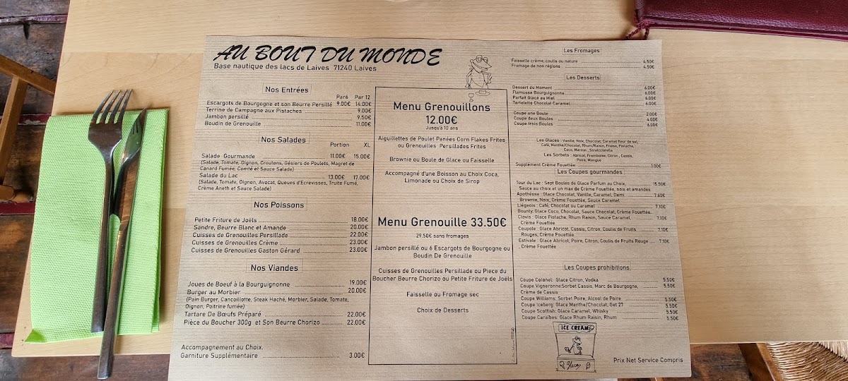 Au Bout Du Monde Menu